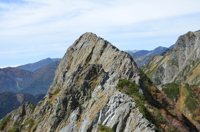 大キレットの底の部分は、ほぼこんな感じのピークを登ったり下りたりします。こんな凄い岩峰が当たり前のように出てくるのですから、大キレットというのは凄まじいわけです。
