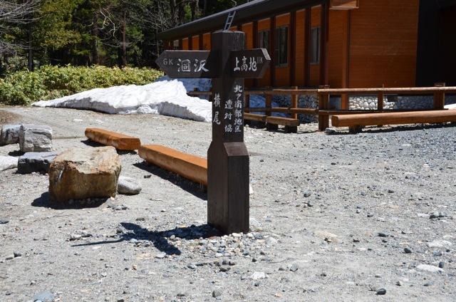 横尾から先はそれぞれ涸沢、槍沢、蝶ヶ岳へと進めますが、当然どちらへ行っても登りになります。今回は涸沢方面へ行きます。