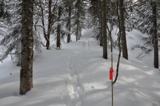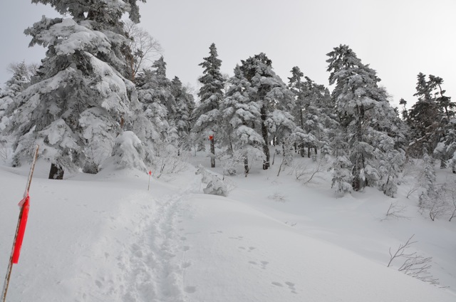気温が高いせいで(っていっても氷点下前後ですが)雪が重たいように感じます。この時期特有のフワッとした感じが無いです。でもその方が歩きやすいというのも事実です。