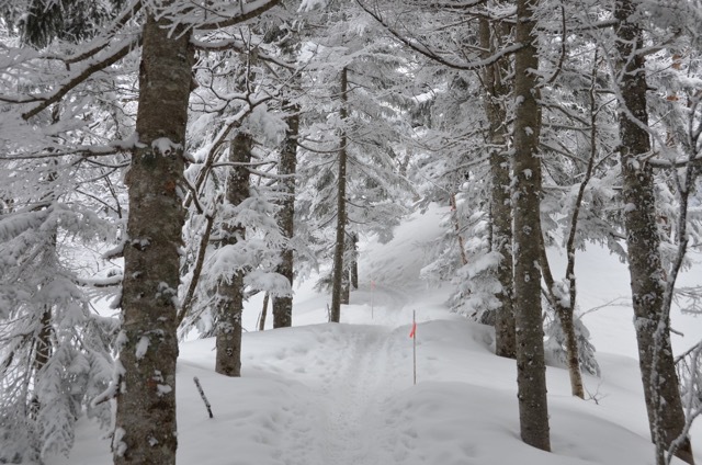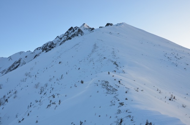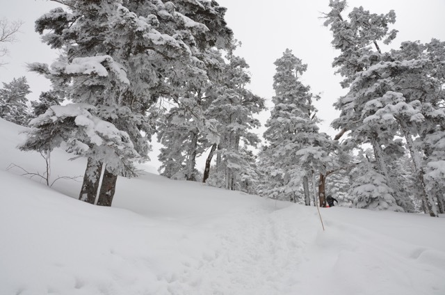 昨日はずっと雪が降っていたとのことでしたので、場合によってはラッセルも覚悟していたのですが、その心配は全くなく雪が締まっていてアイゼンも良く効きました。一部緩いところはあったものの雪のコンディションとしてはまずまずといったところでしょうか。