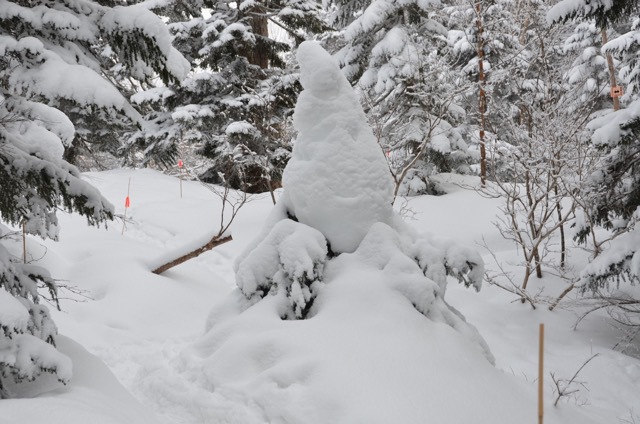 こういった自然が作る芸術もまた魅力的です。へえ〜、なんて感心することもあるし、思わず吹き出してしまうようなこともあります。冬山ならではの光景ですね。