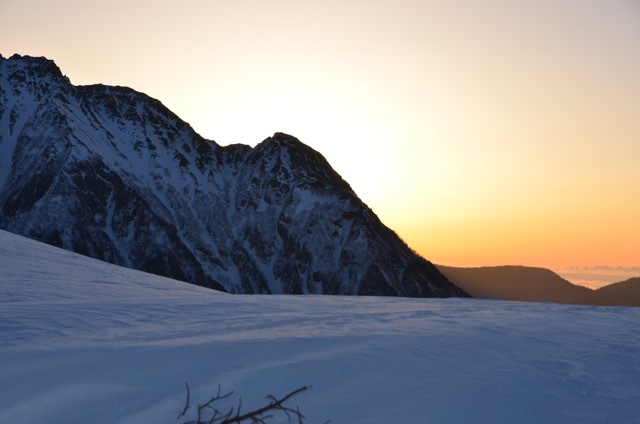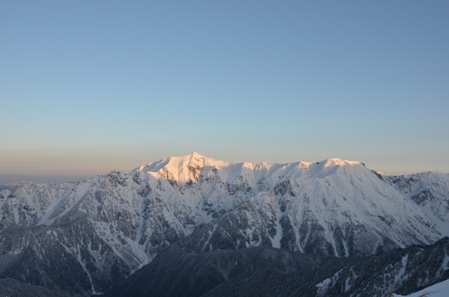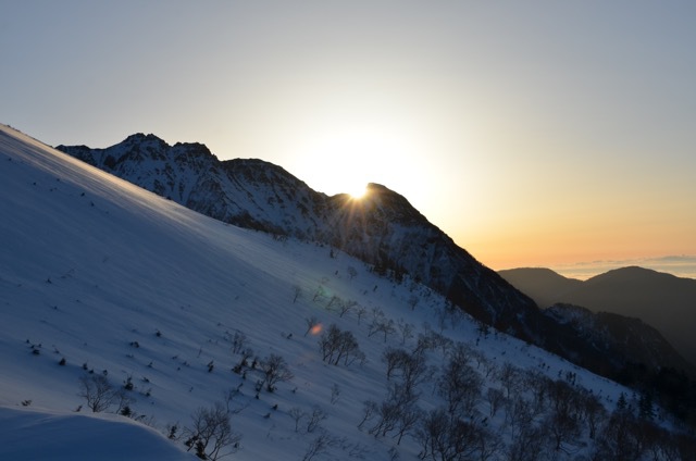明神岳より少し左側からの出現です。この瞬間はとても感動的です。やはり陽の光が当たると全てが眠りから覚めたような感じになって良いですね。