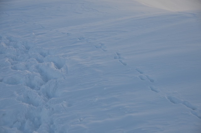 うさぎですね。この時期の小動物はほとんどお目にかかることができません。冬山では雷鳥に2回、うさぎに1回しか出会っていません。
