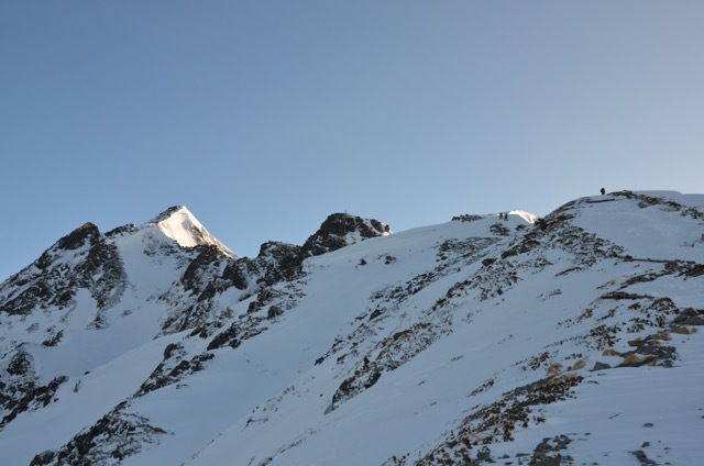 先行者のうちの一人が第9峰に立っているのが見えます。他2人はさらに先に進んでいる模様です。