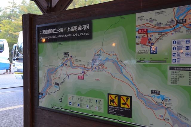と言ってもご存知のように上高地までは一般車は入る事ができないので、手前の沢渡(さわんど)地区にある駐車場に車を止めて、シャトルバス(往復切符2,000円)で上高地へ向かいます。ちなみに沢渡のどの駐車場も1日500円です。
