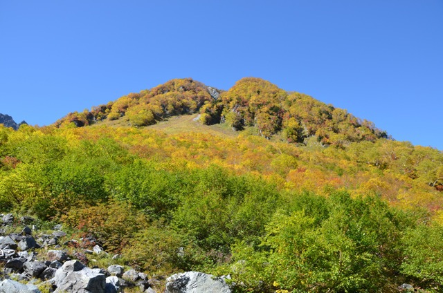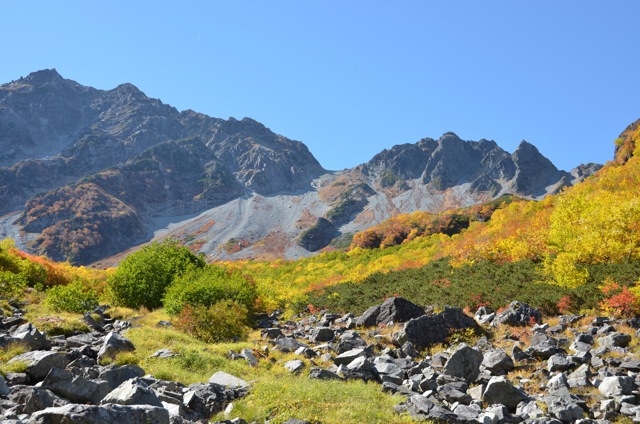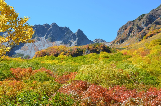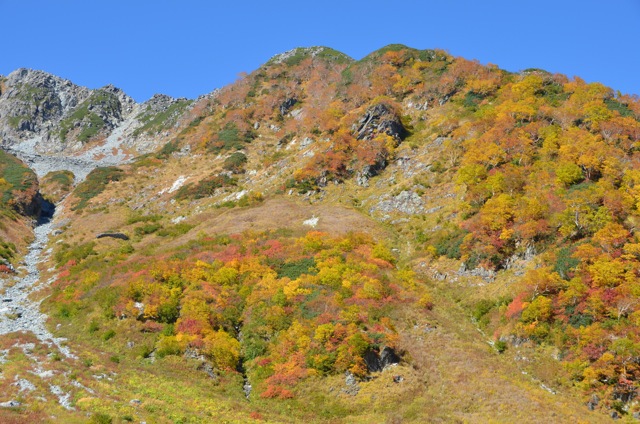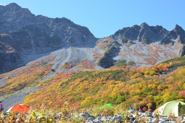 涸沢の一歩手前まで来ると、美しい紅葉で覆われるようになります。