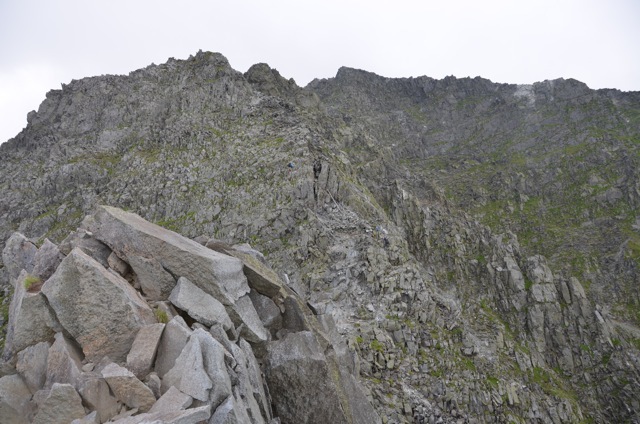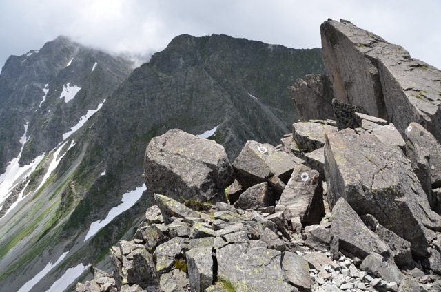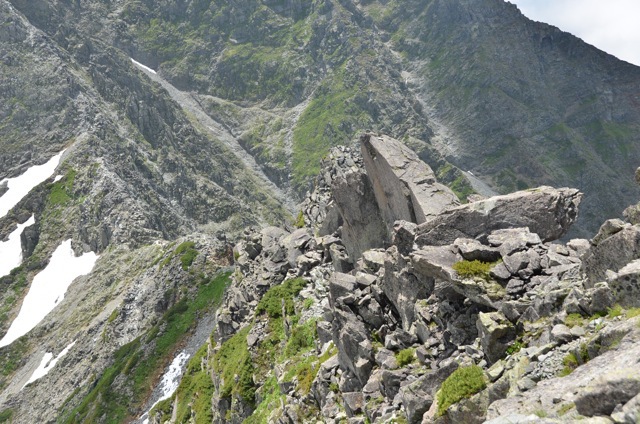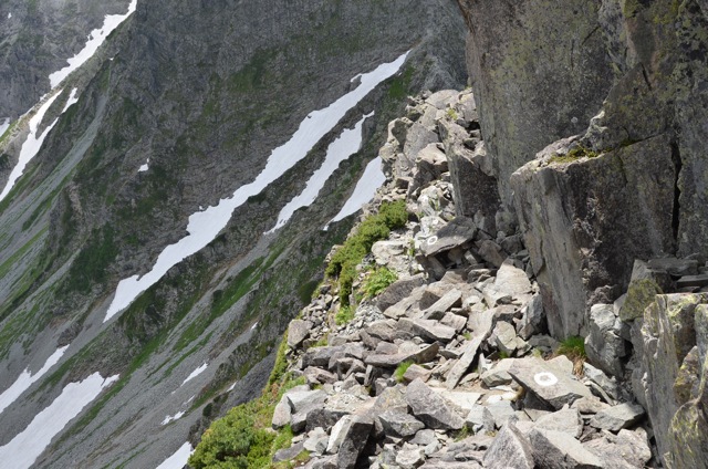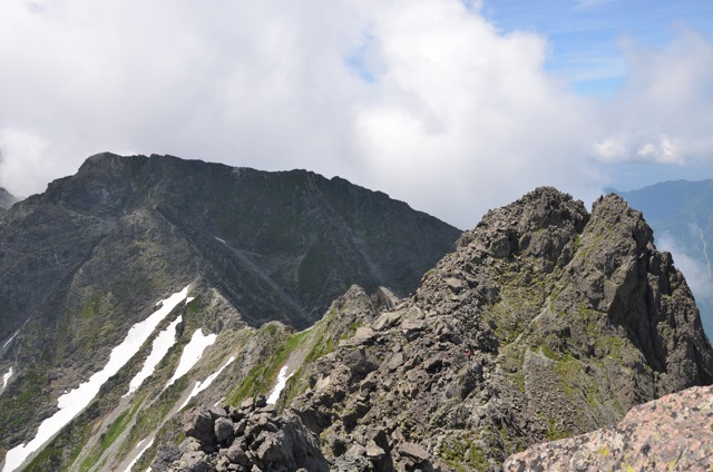 滝谷ドームを超えてしばらくいくと、難所である奥壁バンドがはじまります。この両側に数百メートルもスパッと切れ落ちた稜線を超えて行きます。