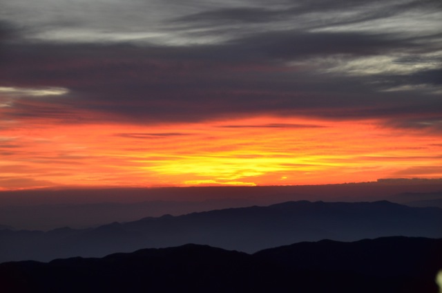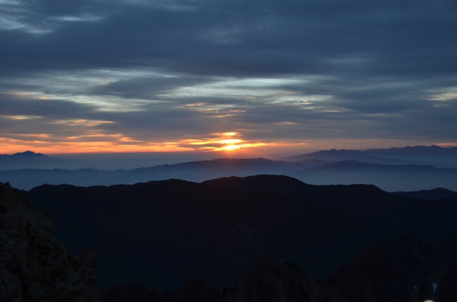 日が高くなるにつれて峰々が太陽に照らされていきます。