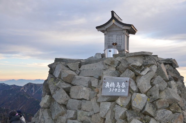 3日目は早朝の出発でしたので氷点下まで気温が下がった稜線を歩いて行きます。奥穂高岳頂上手前でご来光を見た後、吊り尾根をトラバースし、重太郎新道より下山します。