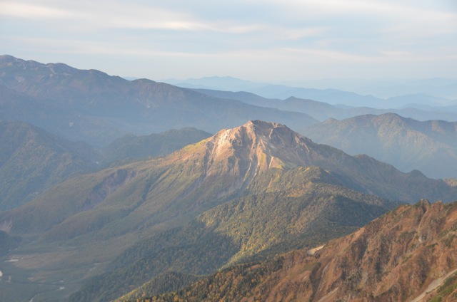 西穂高岳の稜線が見えます。次に北アルプスに来るのはもう雪山シーズンになってからだと思いますので、次回はあの稜線から今いる場所に向けて写真を撮っているかもしれません。