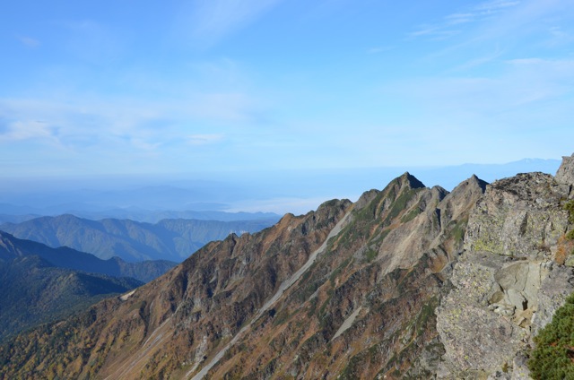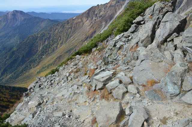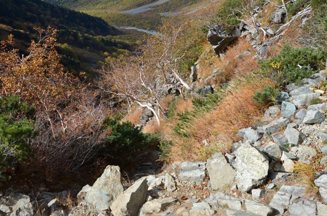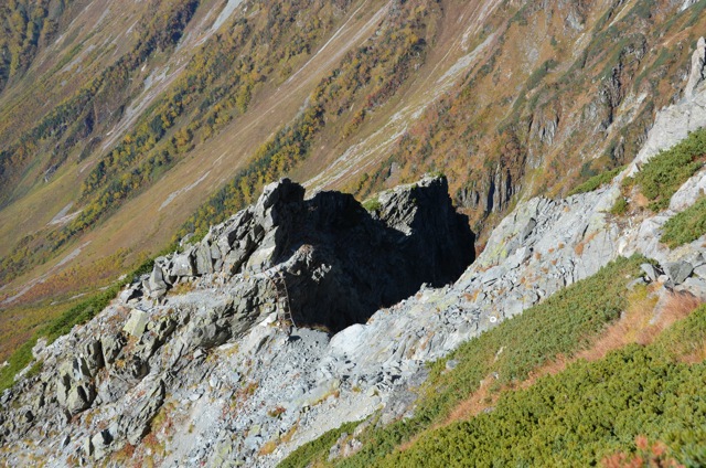 この南稜の頭を過ぎると素晴らしい、というか凄まじいというか、うまい形容詞が見つからないのですが一気に高度を下げて行きます。