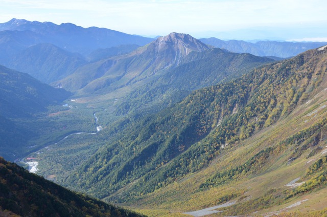 もうすっかり日が高くなり秋の上高地やその周辺の山が照らされています。