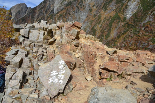 ここで一息つけます。雷鳥広場はなんだか平たい岩が多く、不思議な場所です。さすが前穂高岳をスキップしただけあって、ここで休憩はしないで先へ進みます。