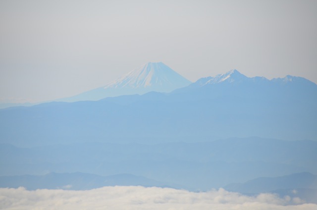 この日は遠く富士山がよく見えました。手持ちのカメラの望遠レンズを最大にして撮影しました。さすが、この重量物をこんなところまで担ぎ上げてきたかいがありました。