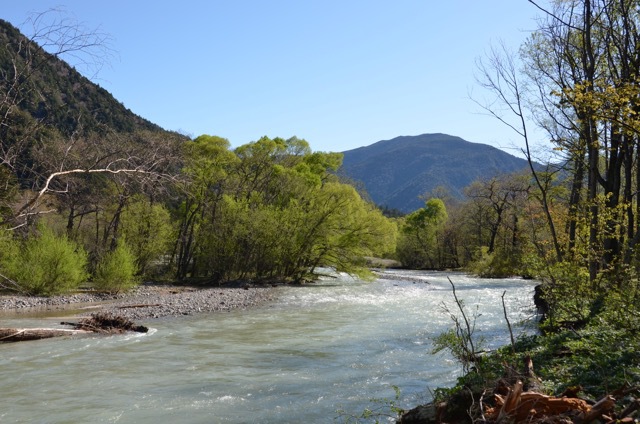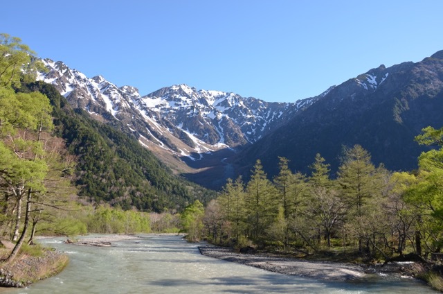 昨日はどうやら大雨だったようで梓川の流れが激しいです。水も濁っていていつもの透明感あふれる梓川ではありませんでした。