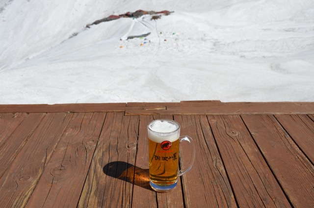 涸沢の広大な景色を見ながらの一杯は何者にも代えがたいです。ビールを飲み昼食を食べてそのままテラスで大の字になって昼寝しました。とても自由ですね。