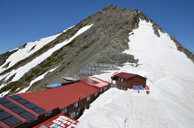 頂上を満喫したら、慎重に穂高岳山荘(白出のコル)まで降りてきます。