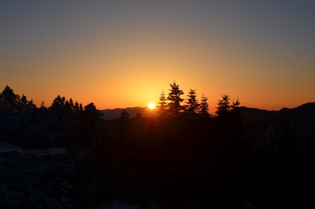 この時期の日の出は、山荘正面から登りますので完璧な姿でご来光を捉えることができます。やはり冬の凛とした空気の中で見るご来光は一段と美しいですね。