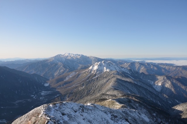後ろに見える笠ヶ岳の稜線もすっかり雪化粧をして美しい姿になっています。