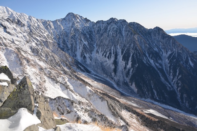 こちらは吊尾根と前穂高岳そして岳沢です。夏・秋の登山の定番ルートです。今年は秋の登山の際の天候が悪く最終日はエスケープしたのでこちら側に来れなかったのが残念でした。