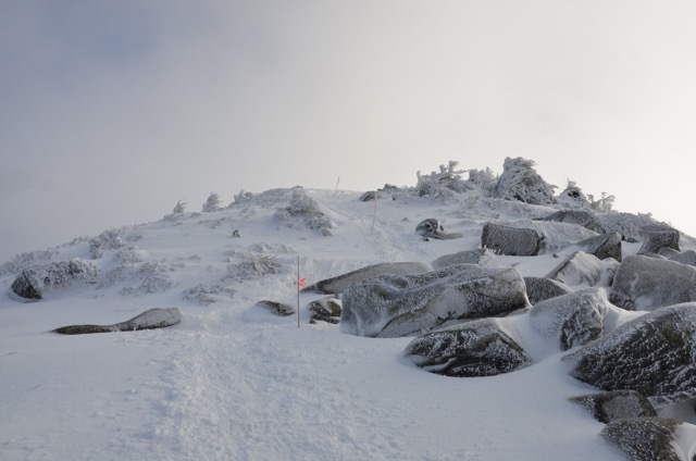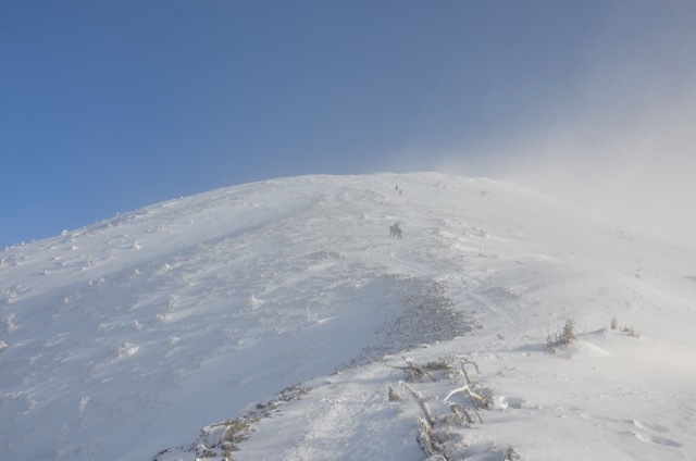 そして山頂方面を見上げると一段と白くなった稜線が見えてきました。