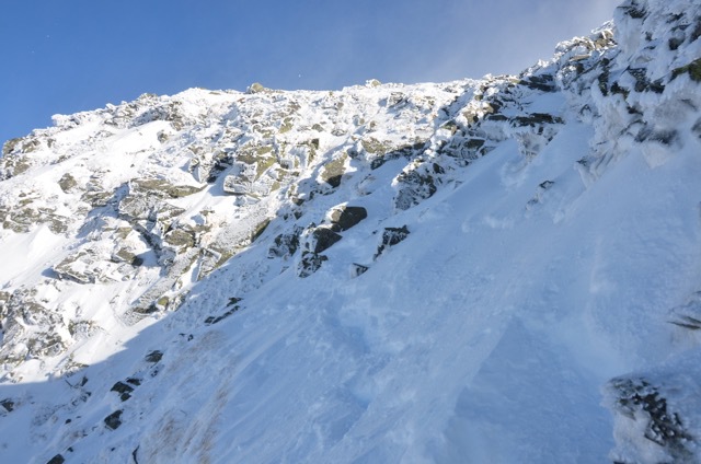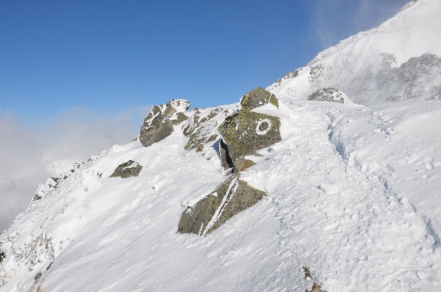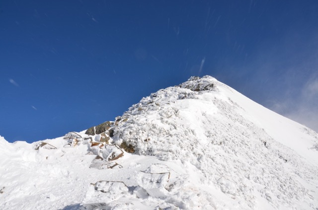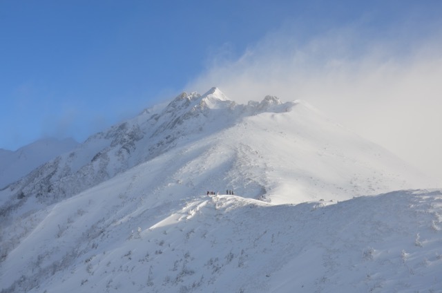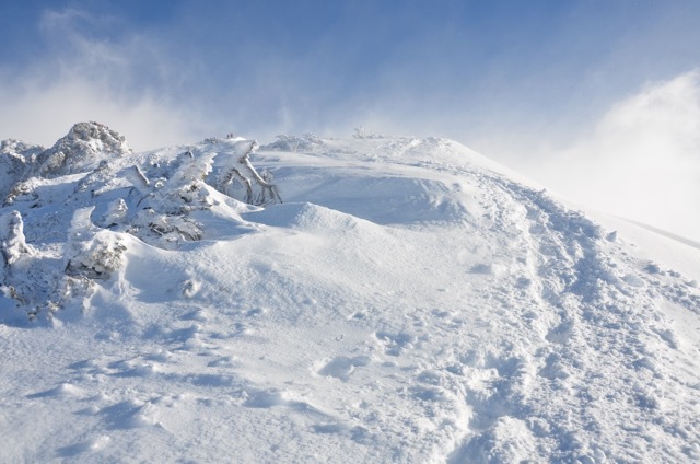 今日のような風が強い時は巻いて行った方が良いのかもしれません。私はあえて峰の上を行く冬道で行きました。こちらの方が慣れているので風が強くても冬道を使います。それに独標から先は問答無用で暴風が吹き荒れる峰の上を越えていかなければなりません。