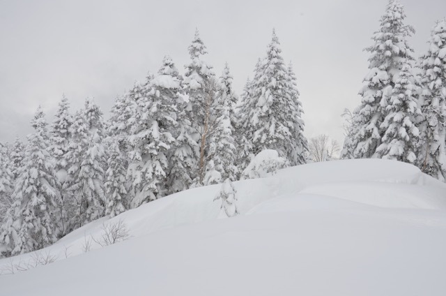 ちなみに稜線は風が強く雪が飛ばされてしまうので同じ降雪量でも雪のつき方は全く異なります。
