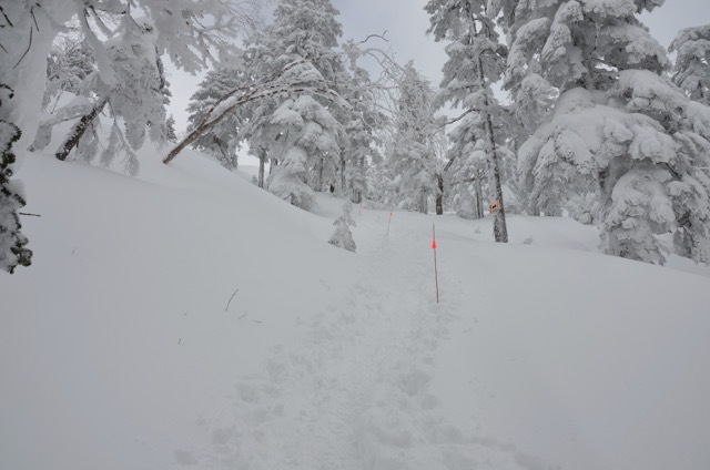 何度も書いていますが第12峰はこの時期、峰の上を越えていきます。よく間違って巻いて行く夏道にトレースがついています。今日はトレースは完全にリセットされているので、新たに冬道にトレースをつけましたが、コンディションからしてすぐ消えてしまうと思います。