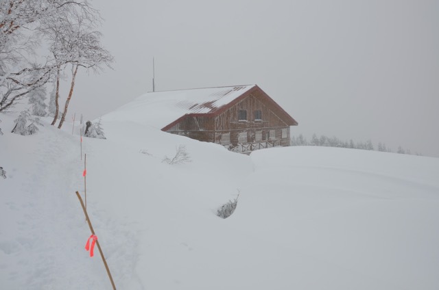 あまりにも雪が多くて山小屋が雪に埋まっているという印象です。