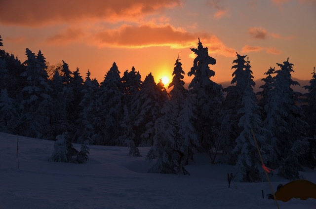 日の出はだいぶ左側(山頂側)に移動して来ました。これが春分の時期にもなると稜線の陰に隠れてしまい日の出の瞬間というのは見れないのですが、この時期はまだ大丈夫です。