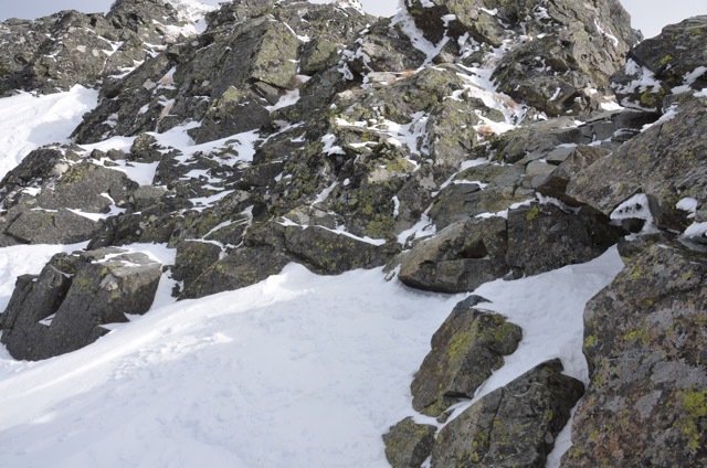 とりわけ途中の鎖から上の部分は雪質によっては相当困難を強いられることになります。さて、今回はどうでしょうか。ここまで登って来た中ではあまり好条件は期待できないように思えます。