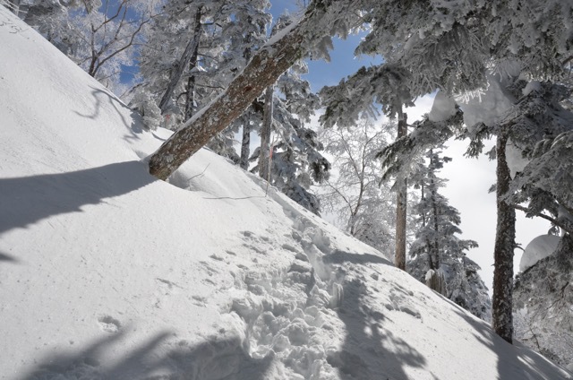 今日もしっかりとしたトレースが付いていて安心です。一度大雪が降ると写真のようなトレースも全てリセットされてしまいます。