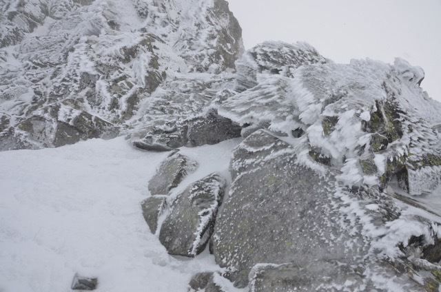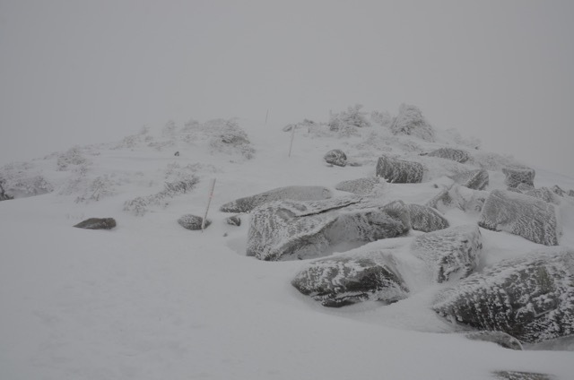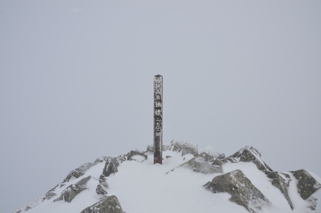 独標本体は岩こそ写真のように凍結していたものの、足元の雪は普通にアイゼンやピッケルが効く状態で、こちらは逆に登りやすい状況でした。