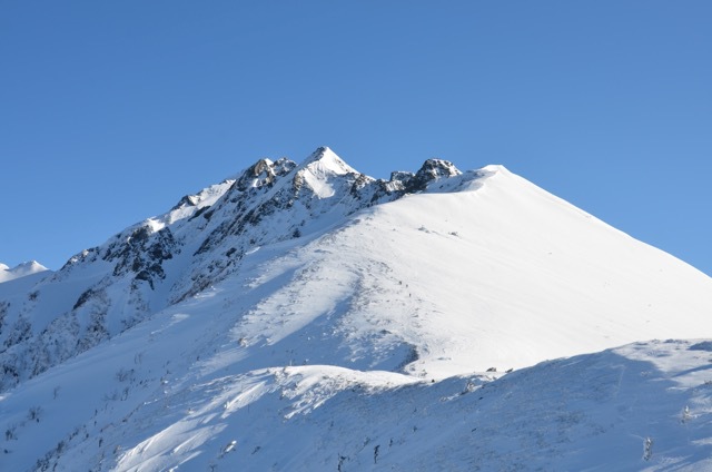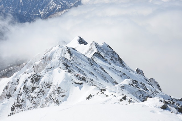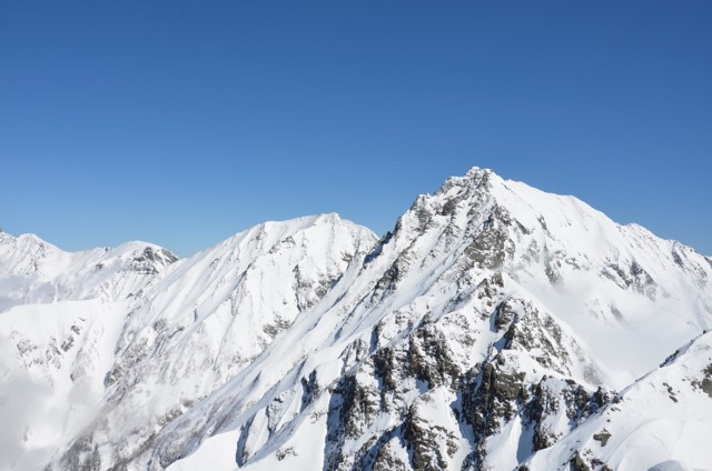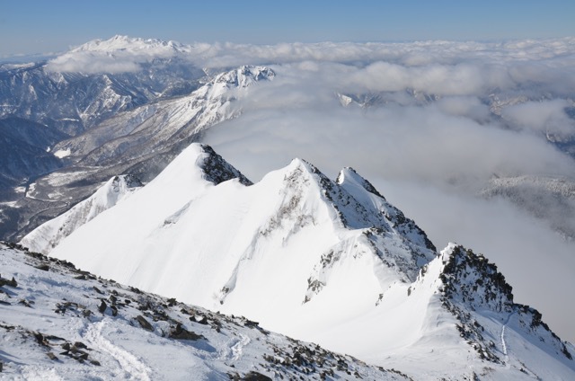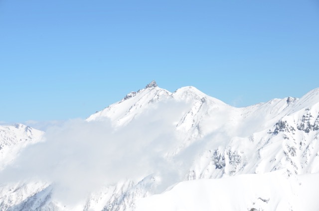 ここからの光景はもう幾度となく見て来ました。それでも同じ景色であったことはありません。もちろん形が変わるということはありません。言うなれば私たちが毎日会う人も顔や体が変わることはありませんが、着ている服は会うたびに異なるわけで。ここから見る稜線も雪の付き方とか陽の当たり方で異なって見えます。それがとても楽しいです。「今日はどんな姿なんだろうな」って。