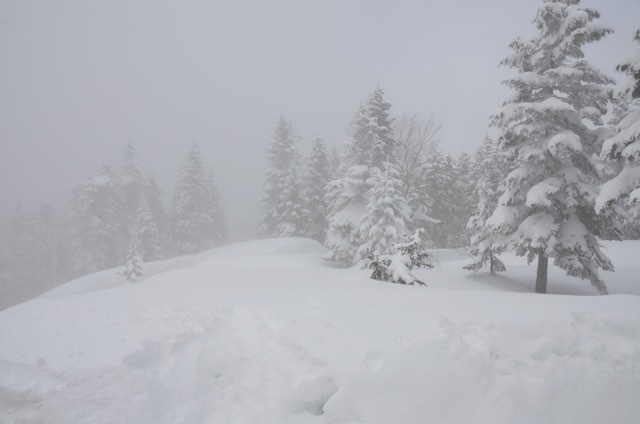 私は意外にも雪で埋まった樹林帯で鉛色の空の下歩いて行くのは好きです。人のいる世界から解放され厳冬期の厳しい世界に自分一人だけ置かれているという、その感覚が何か全てのものから解放されたような気分がするんですね。