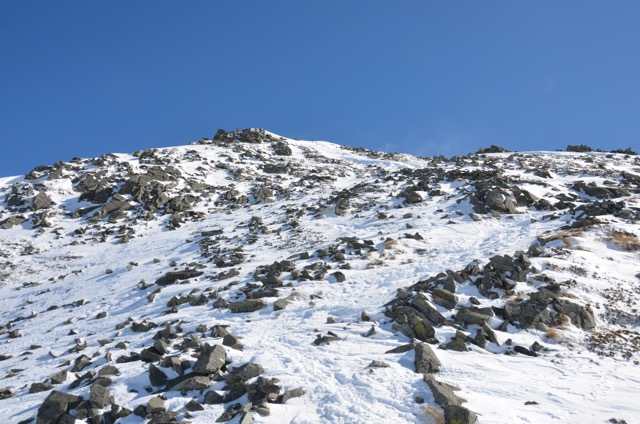 丸山上部の広大な稜線を登り終え、稜線が細くなって来ると独標の姿が一段と大きくなってきます。