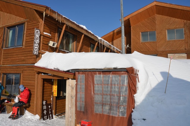 さて、シーズン最後の冬山の登頂を終え、山小屋の中に入っていきます。