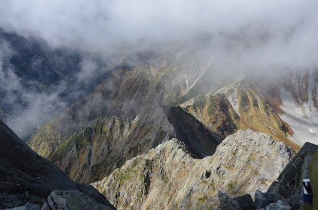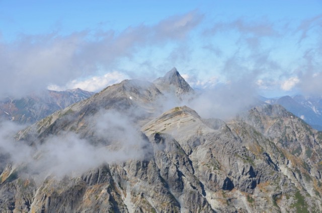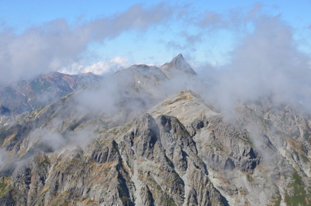 先ほどまで視界がなかった槍ヶ岳方面は、大キレットが見えるようになっていました。