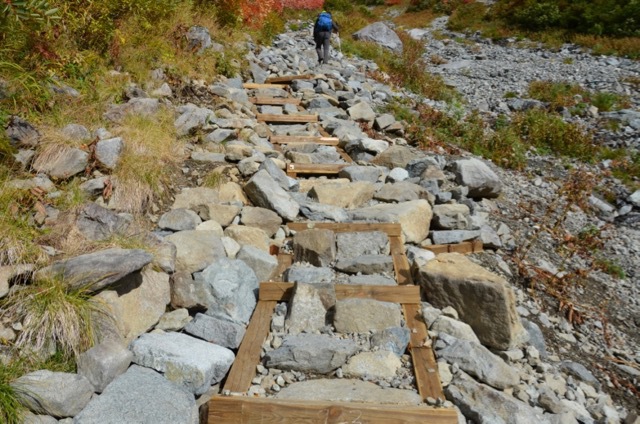予想はしていましたが、横尾まで下山する途中で仰天するほどの登山者や紅葉ツアーの人とすれ違いました。先に降りている人が上手にすれ違うことができないので渋滞が発生してしまう始末。