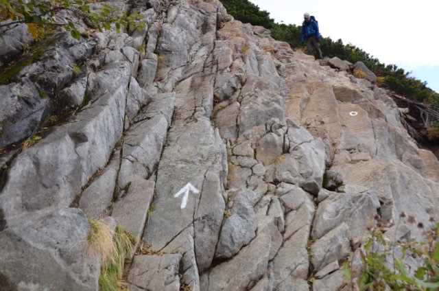 さて、難所である一枚岩まできました。岩場の直登に慣れていないとかなり手こずる場所です。