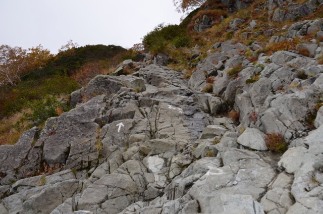 一枚岩を過ぎると登山道は完全に岩登りになります。