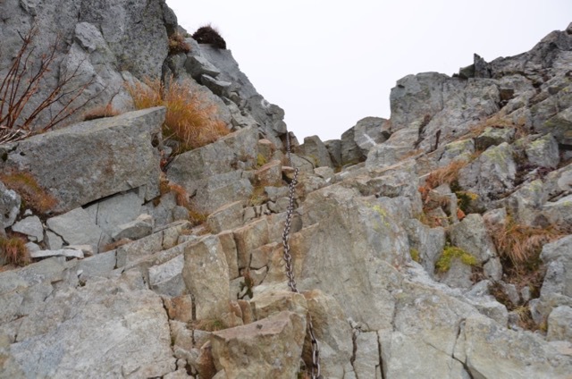 幸い大キレットのように高度感がある中での鎖ではありませんので、落ち着いてゆっくりと取り付くことができます。