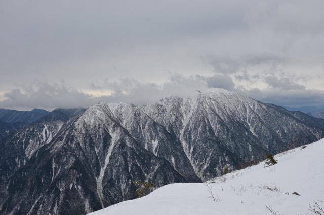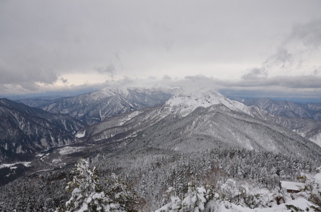 今日は厳冬期特有の鉛色の空。それでも視界はあるので乗鞍岳程度の距離であればくっきりと見えています。