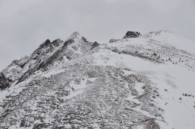 ピラミッドピーク下部の雪壁部分は最高に大変そうです。その奥の第7峰に至っては見ただけでも鼻血が出そうなほど危険な状態です。