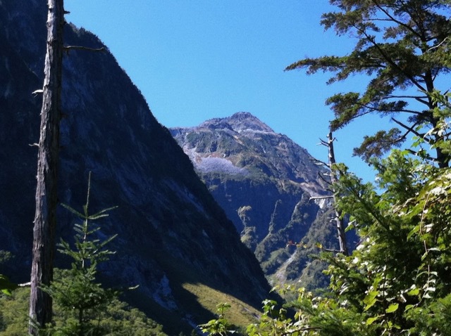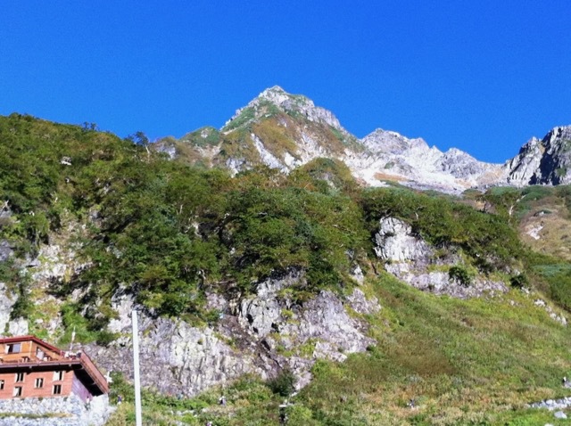 先週は荒天のため気づかなかったのですが、今日は屏風岩がよく見えます。クライミングのメッカと聞いていますが、あんな崖を登って行ってしまうなんて本当にすごいですね。