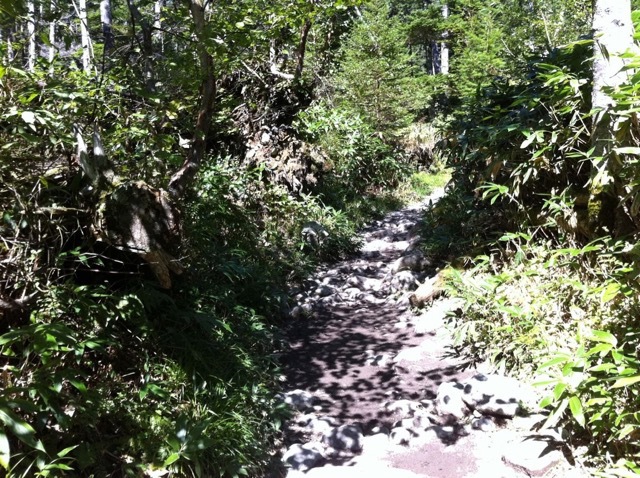 徳沢〜蝶ヶ岳と比べると傾斜は緩いなと感じます。この時点では・・・ そう、この時点では。