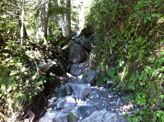 しばらくは沢沿いの道を歩いて行きます。意外にこの距離が長く感じます。時々下山してくる人とすれ違います。