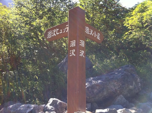 今回は夕食のみを涸沢小屋でいただくことにしていますので、涸沢小屋方面へ向けて右側に登って行きます。
