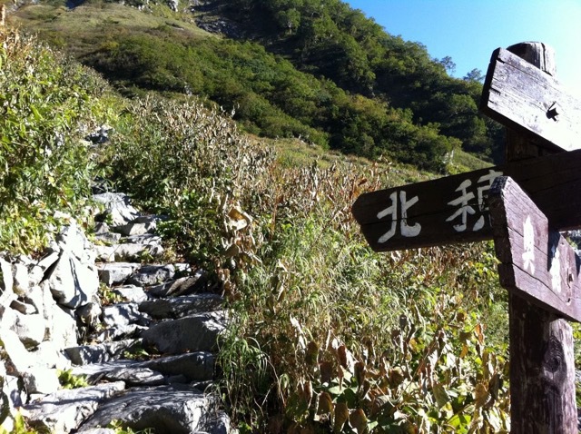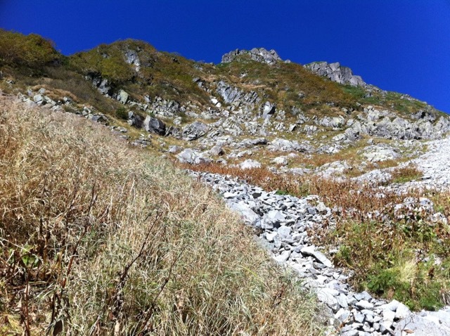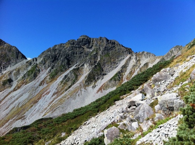 草はすでに枯れていますが木々はこれから紅葉でしょうか。周囲は完全に岩です。これが穂高なんですね。