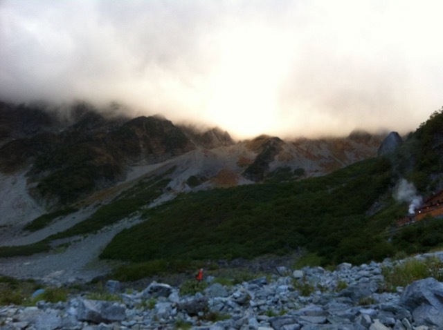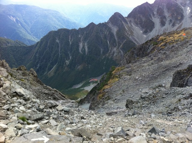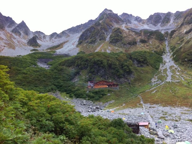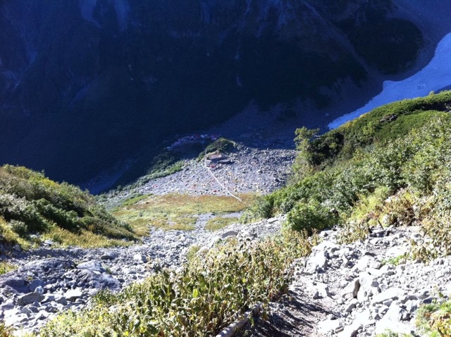 一通り休憩できたら、今度は涸沢のベースキャンプへ下山です。